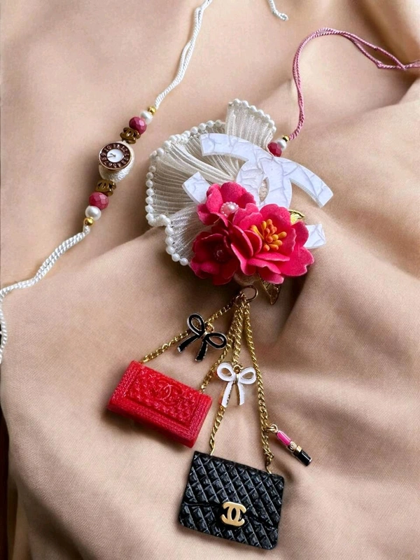 Chanel charm,rakhi special,bro-sis bonding,designer rakhi,bhai bhabhi rakhi,couple set rakhi