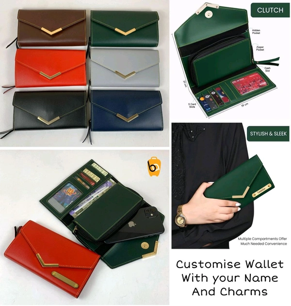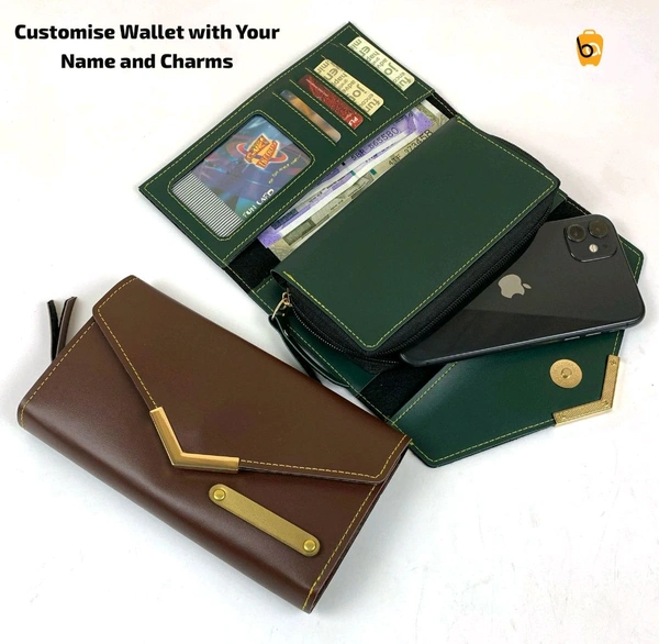 Premium long mobile wallets in Pu Leather with space for cards and currency.Print customized names and add charms.