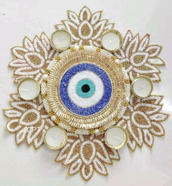 Discover the perfect blend of tradition and elegance with the Evil Eye Lotus Rangoli, exclusively from Adornia. This stunning piece is designed to captivate attention and infuse your space with positivity, making it a must-have for festive celebrations, home décor, or as a thoughtful gift for loved ones. Combining the protective charm of the evil eye with the timeless beauty of a lotus-inspired rangoli, this creation is a true masterpiece.