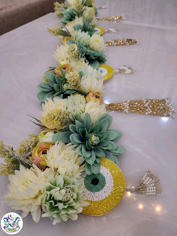 Handcrafted with attention to detail, the toran showcases a harmonious mix of floral aesthetics and the protective symbolism of the evil eye, making it not just a decorative piece but also a meaningful addition to your home.