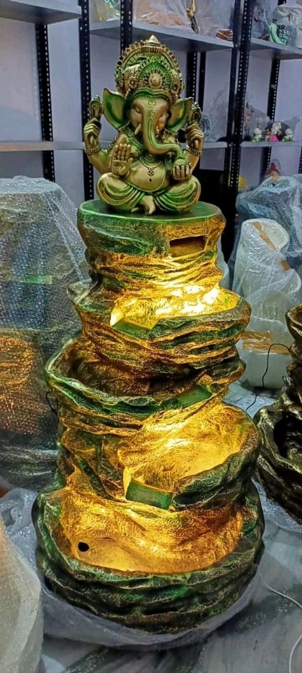 Decorative water fountain featuring Lord Ganesha.It is 3 tiered with in built lighting. Ganesha, known as the remover of obstacles, is often worshipped for luck, wisdom, and prosperity.