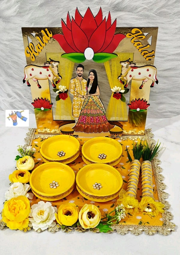 Introducing the Haldi Platter, a stunning creation from Adornia, crafted to bring elegance and functionality. Perfect for festive celebrations, intimate gatherings, or simply adding a touch of sophistication to your wedding rituals, this platter is designed to impress and delight.