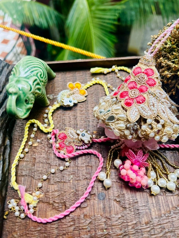 Stunning designer rakhi adorned with intricate designs,precious stones and meticulous craftsmanship.