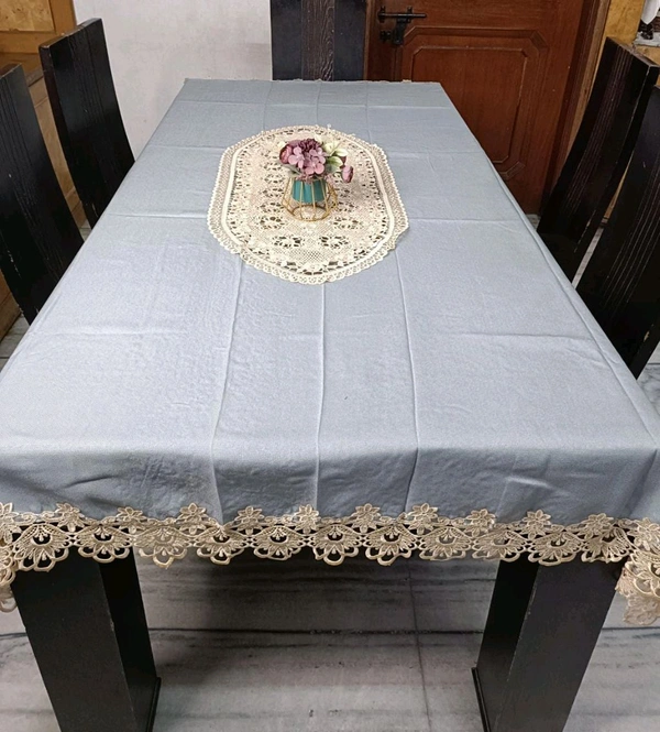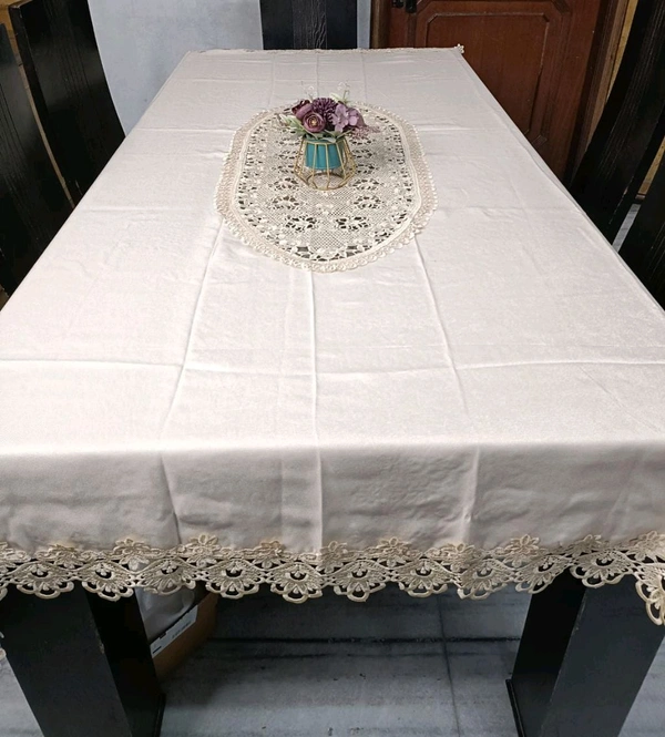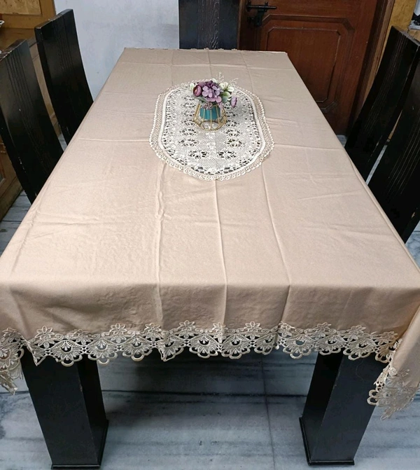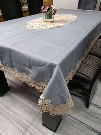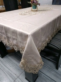 *Cotton jute BEAUTIFUL 6 SEATER DINNING TABLE COVER WITH CUT WORK BORDER*