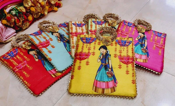 Gft bag with handle with various prints for your haldi,mehendi, Ganpati,Durga Pooja,wedding n many more occasions.