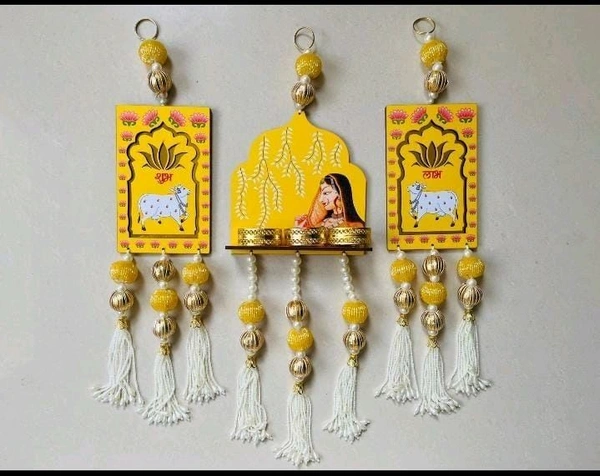Shubh labh door hanging n tlight holder in pichwai pattern.Colors available.