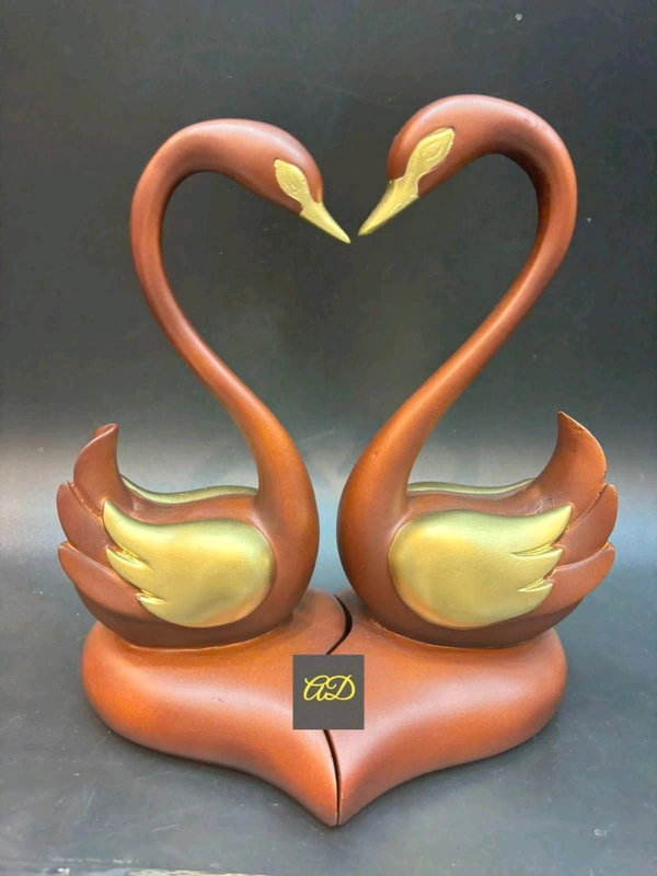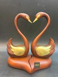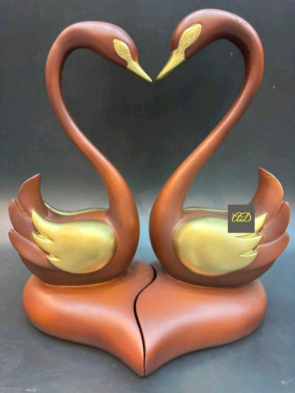 *Two Swans Figurines sitting graceful and slender necks arched and elegantly, with sparkling colors of wooden colour and Golden*