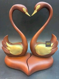 Add a touch of sophistication and timeless beauty to your home with our Two Swans Figurines. These exquisitely crafted pieces feature slender, gracefully arched necks and sparkling details in a stunning combination of wooden tones and golden accents. Perfect for creating a serene and elegant ambiance, these figurines are designed to complement any decor style.