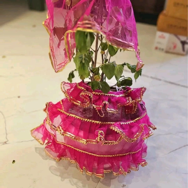 Beautifully detailed and made with care, this poshak/vastra is a heartfelt offering that enhances the sanctity of your space while reflecting your reverence and devotion. Whether you're preparing for a puja or simply wish to beautify your Tulsi plant, this garment is an ideal choice for those who cherish their spiritual journey.